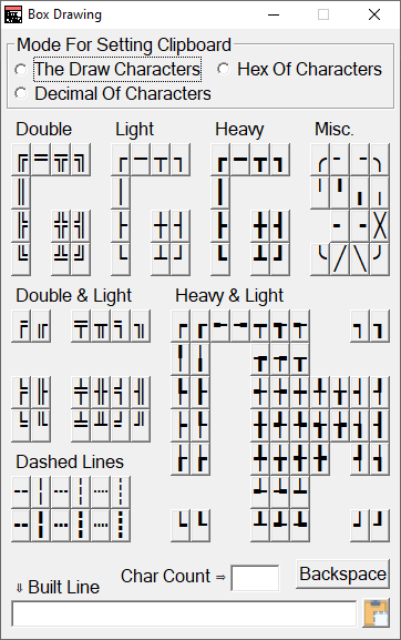 control add button, hBoxDrawDlg, %ID_HvyVertLeftLiteRiteBtn, chr$$(&h2549), _